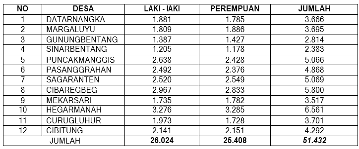 Berikut adalah poin-poin penting profil Kecamatan Sagaranten: