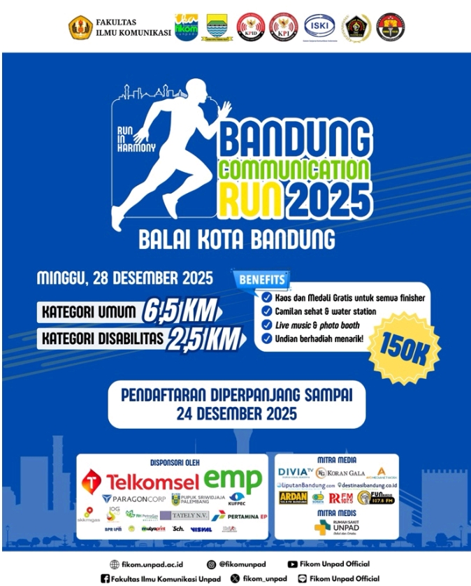 Fikom Unpad dan IKA Fikom Unpad Menggelar “Bandung Communication Run 2025”, Ini Kategorinya !