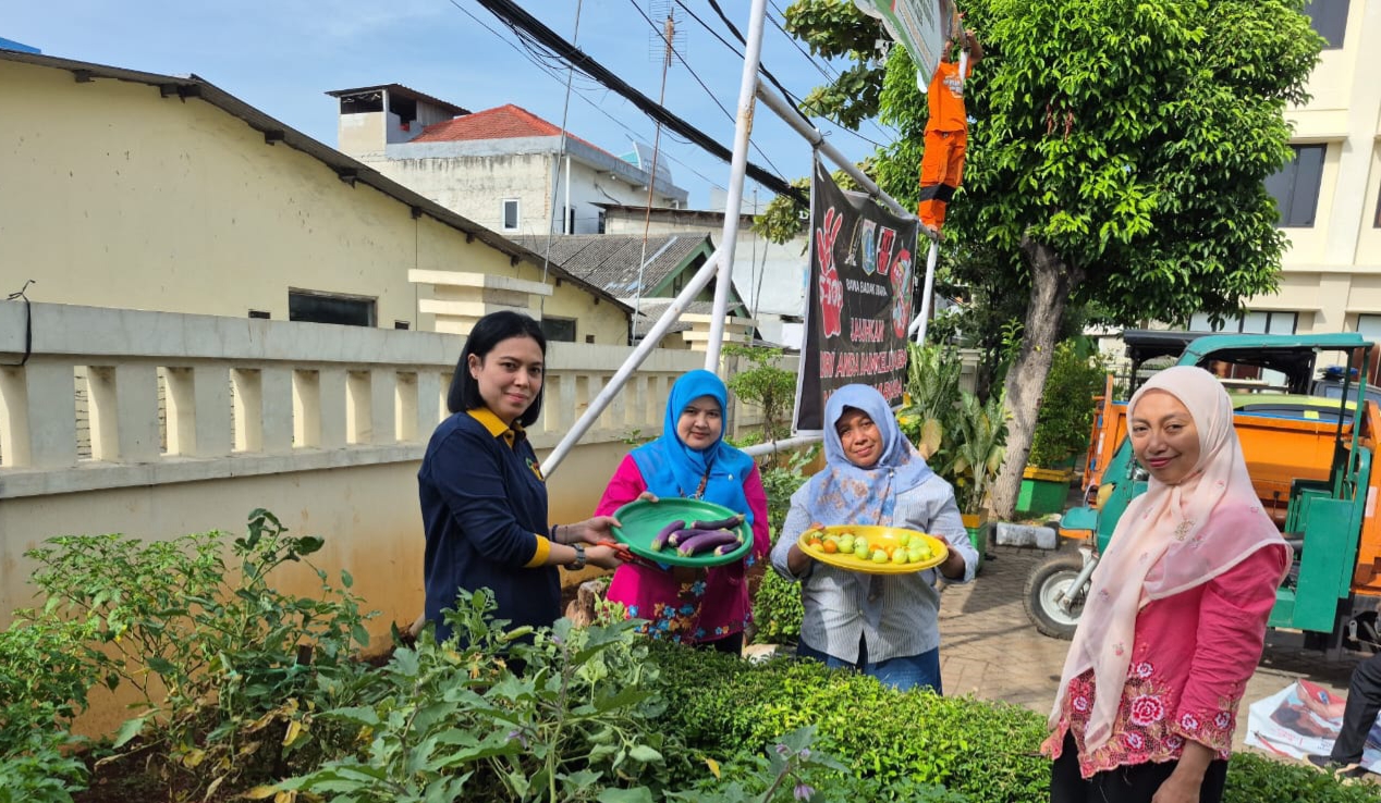 Usai monitoring PSN dilanjutkan dengan sedekah minyak jelantah dan kegiatan panen buah dan sayuran di lahan urban farming yang berada di Kantor Lurah Rawa Badak Utara.