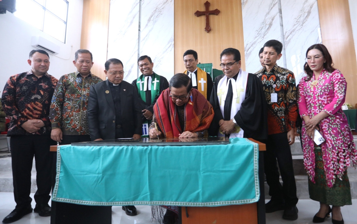 Perlu diketahui, dalam kesempatan tersebut, Pramono menerima kain khas Batak atau ulos sebagai simbol toleransi antarumat beragama, sekaligus menandatangani prasasti peresmian Gedung Gereja HKI Tanjung Priok.