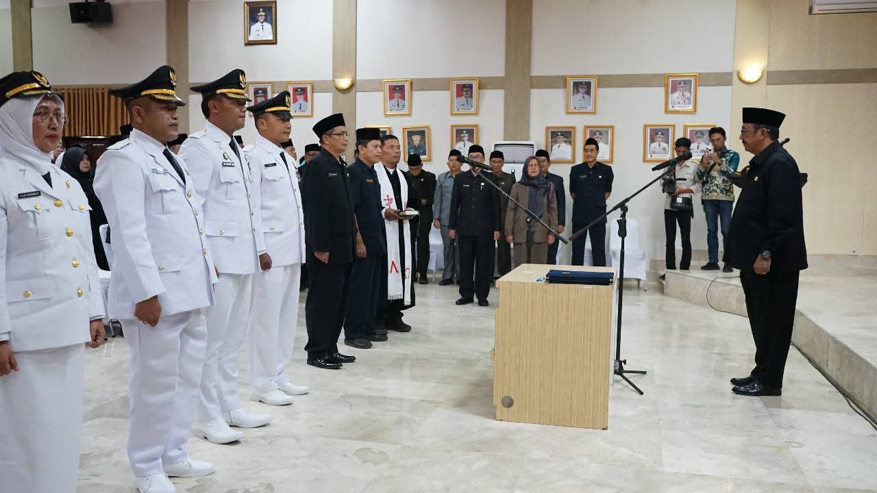Mereka yang dilantik terdiri dari 25 pejabat pimpinan tinggi pratama, 125 pejabat administrator, 136 pejabat pengawas, serta 7 kepala puskesmas. Prosesi pelantikan berlangsung khidmat dan dihadiri wakil Bupati H Andreas dan Sekretaris Daerah H Ade Suryaman.