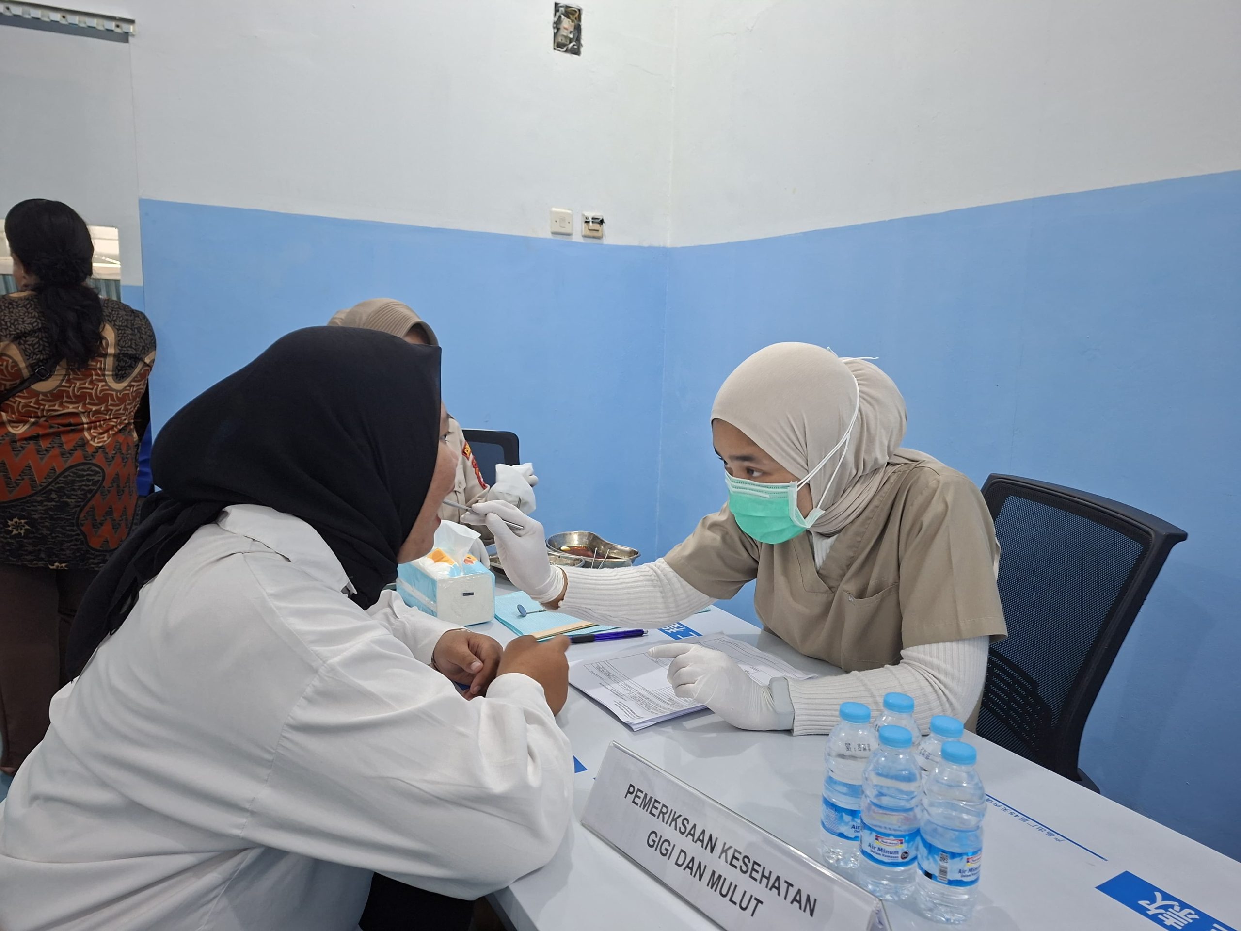 Dalam kegiatan tersebut, para calon relawan SPPG terlebih dahulu melakukan pengisian daftar hadir dan formulir kesehatan. Selanjutnya, peserta menjalani serangkaian pemeriksaan yang meliputi pengukuran tinggi dan berat badan, lingkar perut, pemeriksaan tekanan darah, nadi, suhu tubuh, pernapasan, hingga pemeriksaan laboratorium, urine, serta pemeriksaan kesehatan gigi dan mulut.