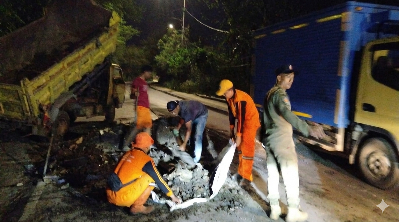 Kegiatan penanganan berlangsung pada pukul 20.00 hingga 22.00 WIB. Petugas melakukan pengaturan arus lalu lintas serta pembersihan material tanah galian yang berserakan di badan jalan agar tidak membahayakan pengguna jalan.