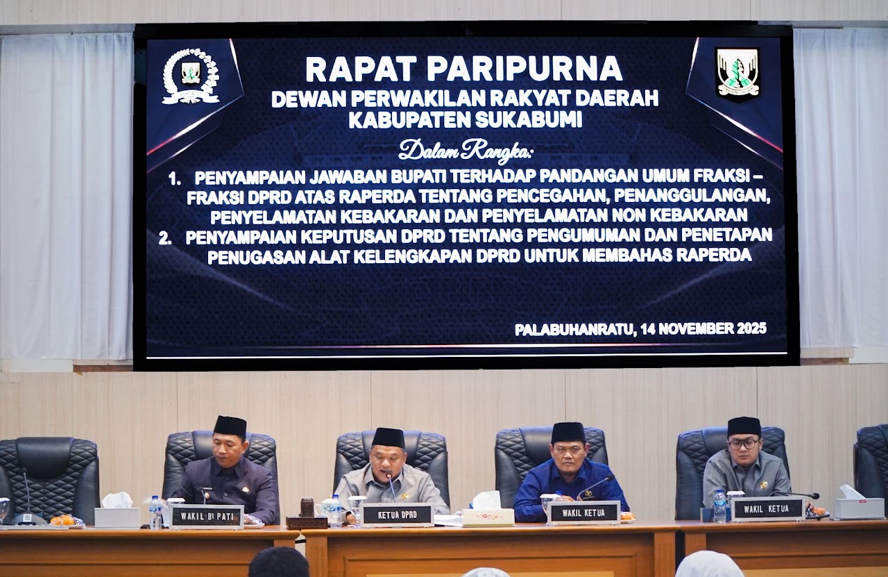 Selanjutnya, Sekretaris DPRD Kabupaten Sukabumi, H. Wawan Godawan Saputra, S.IP., M.A.P., membacakan Keputusan DPRD Nomor 20 Tahun 2025 yang menetapkan Komisi II sebagai alat kelengkapan yang bertanggung jawab membahas raperda dimaksud. Komisi II akan melakukan pembahasan mendalam, baik secara internal maupun melalui rapat kerja dengan mitra terkait, sebelum menyusun laporan untuk dibahas kembali dalam rapat paripurna.