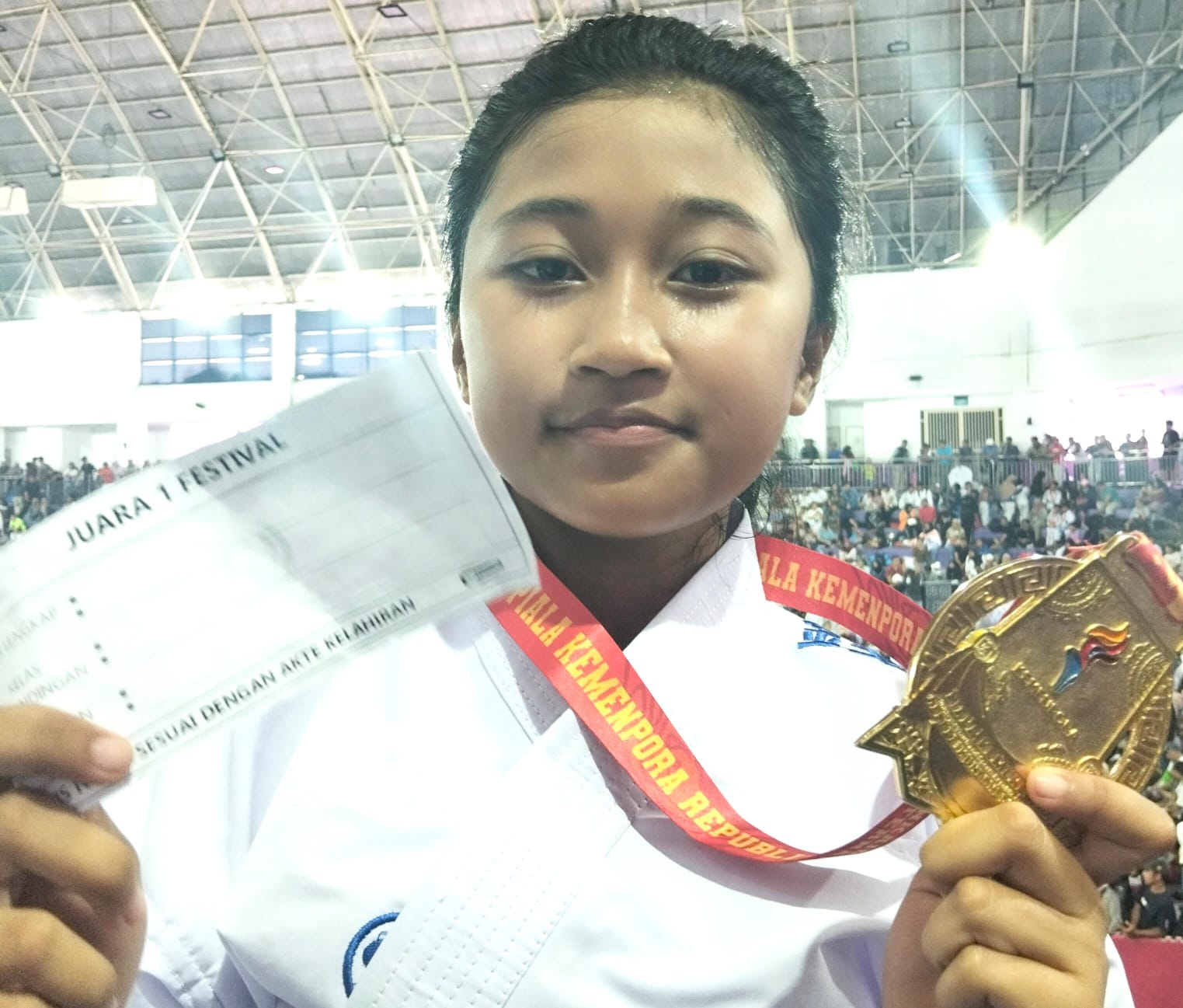 INDVESTA.ID – Rd. Ratu Dinar Nusantara Putri Abdul Salam, pelajar asal Kota Sukabumi, berhasil mengharumkan nama daerah dan sekolahnya di kancah internasional. Siswi berusia 13 tahun yang akrab disapa Neng Ratu ini sukses meraih medali emas pada ajang bergengsi Senkaido Open International Championship Seri VII kategori Karate Kata.