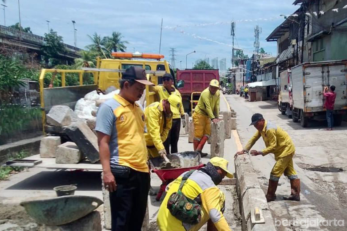 Arief menjelaskan, pemasangan kanstin dilakukan sepanjang 320 meter pada sisi kanan jalan dengan mengerahkan 17 personel Pasukan Kuning dari tingkat kecamatan dan suku dinas.