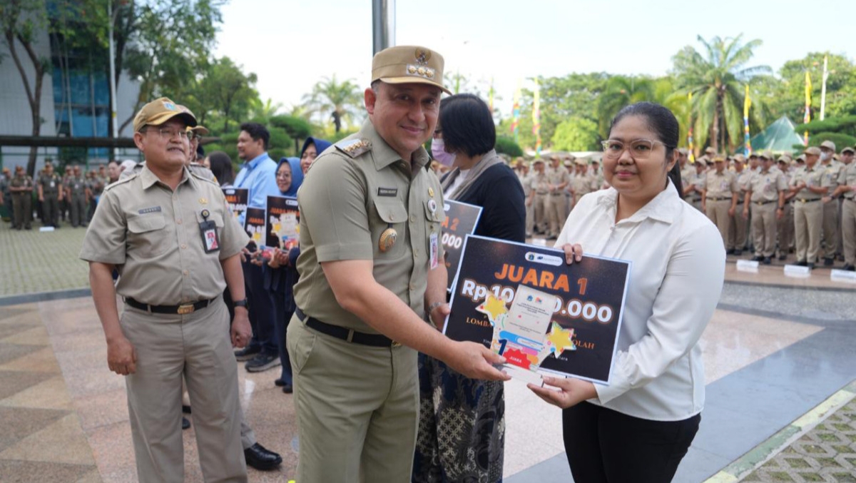 INDVESTA.ID – Wali Kota Jakarta Utara, Hendra Hidayat menyerahkan trofi dan hadiah uang pembinaan kepada para pemenang lomba Perpustakaan Sekolah Jenjang SD, SMP, dan Sederajat Tingkat Kota Jakarta Utara di halaman Plaza Barat, Kantor Wali Kota Jakarta Utara.