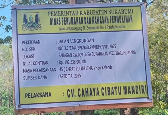Pembangunan yang Pelaksanaan pekerjaan dipercayakan kepada CV. Cahaya Cibatu Mandiri selaku kontraktor tersebut dilaksanakan berdasarkan Surat Perintah Kerja (SPK) Nomor 000.3.2/E744/SPK/BID.PKP/DKPK/VII/2025 dengan nilai kontrak sebesar Rp192.838.000,00.