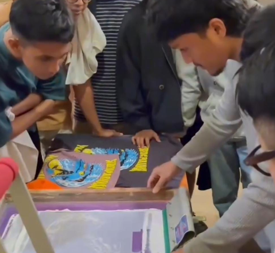 Kegiatan ini diisi dengan pelatihan teknik sablon, pengembangan kreativitas desain, hingga strategi pemasaran digital guna membangun brand lokal yang lebih kuat dan berdaya saing.